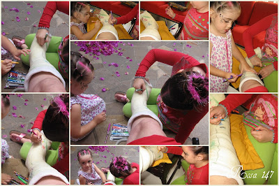 Minhas netas não poderiam perder a oportunidade de fazer novas pinturas antes de tirar o gesso.
