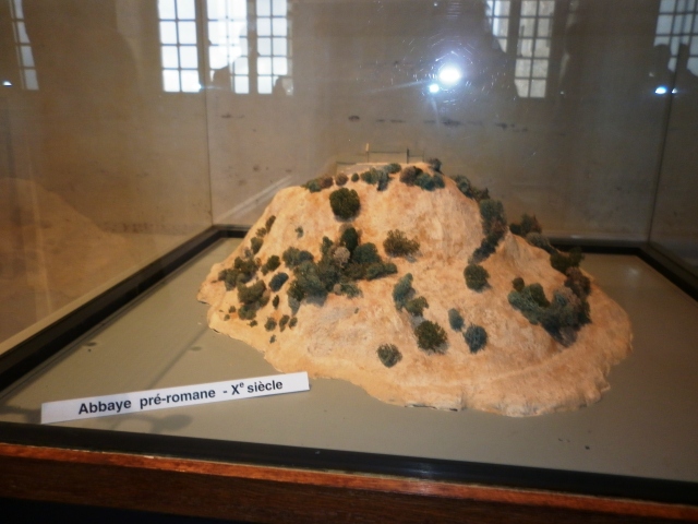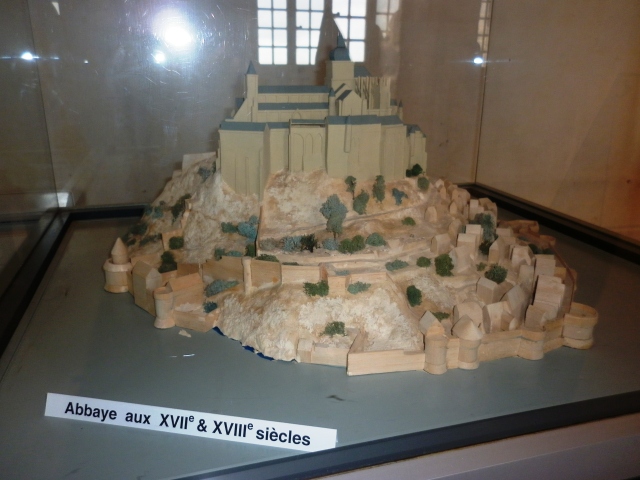 Maquetes que mostram a evolução do Mont Saint Michel através dos tempos: