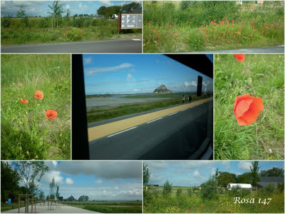 Ao sairmos de Avranches, já podíamos ver o Mont Saint Michel. A gente chega direto a um enorme estacionamento, ainda longe, depois vai de ônibus, gratuito, pois já está no preço do estacionamento, até a entrada.